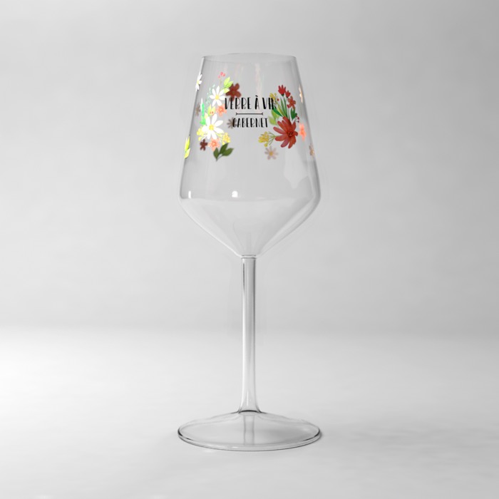 Copa de vino de 370ml (capacidad plena de la copa), con posibilidad de decorarla con total nitidez gracias a un proceso de impresión muy preciso. De peso ligero, con lujoso diseño, transparente y reutilizable. Apto para lavavajillas (más de 300 lavados).