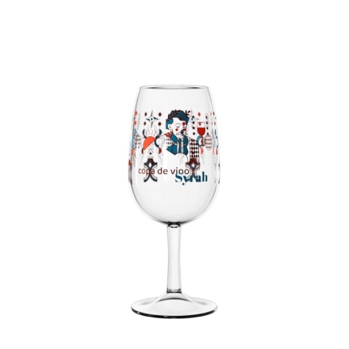 Copa de vino de 225ml (capacidad plena de la copa), fabricada en material Tritán, un material resistente parecido al vidrio, irrompible fino y elegante a la vez. Apto para el frigorífico, microondas y lavavajillas (más de 300 lavados). Sin BPA. Copa de alta gama, ideal para personalizar con un diseño único.