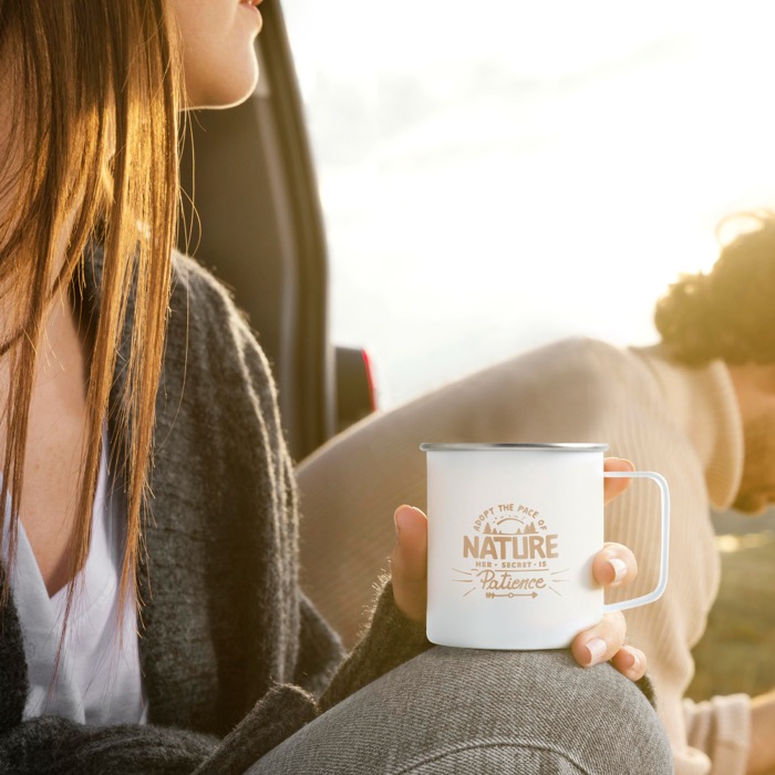 - Taza de 400 ml en RSS (acero reciclado) y apta para uso en interiores y exteriores