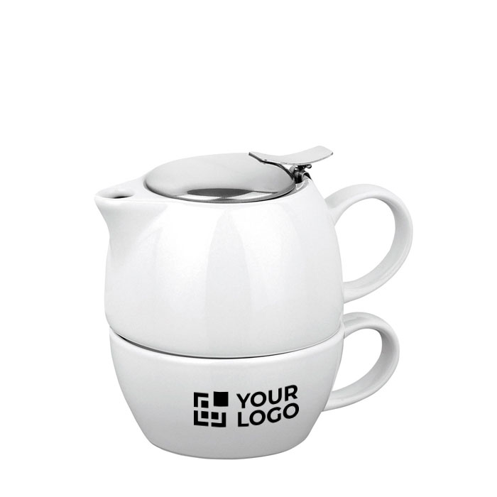 Un accesorio que no puede faltar en el hogar de aquellos que beban infusiones. Personaliza este set de tetera con taza con tu logotipo y regálalo.