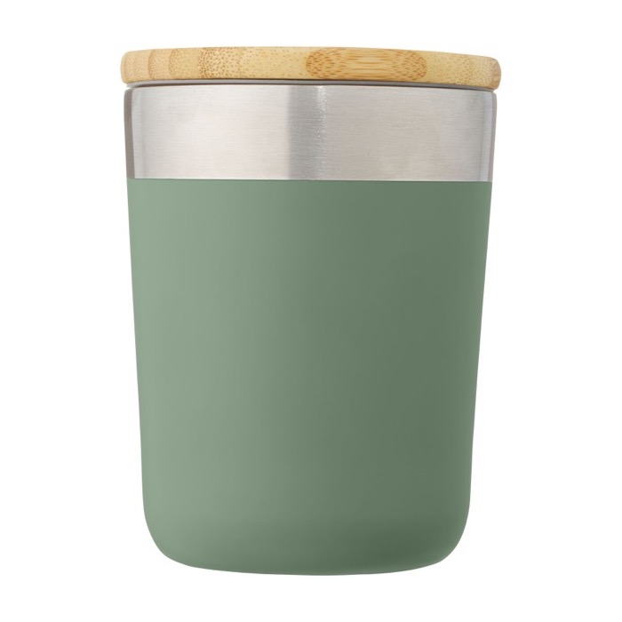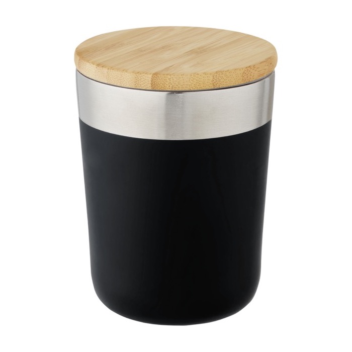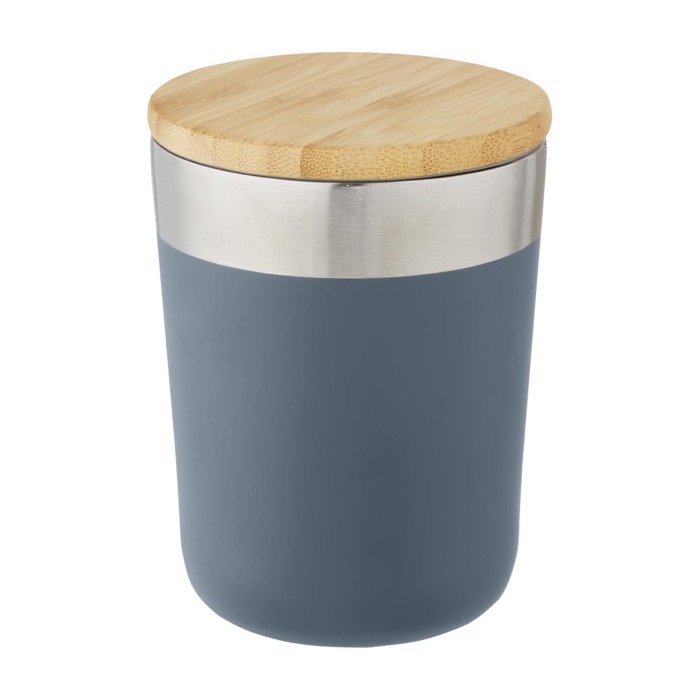 Acompaña a tus clientes en todos sus cafés del día con este vaso termo con tapa de bambú. ¡Elige el color, pon tu logotipo y haz que te recuerden!