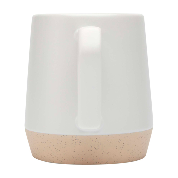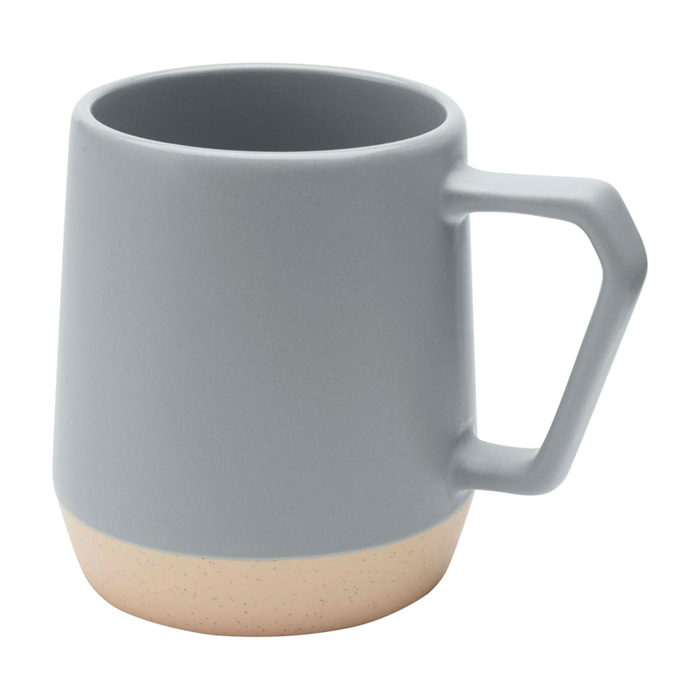 Taza de cerámica con base sin esmaltar, ideal para la oficina. Es apta para lavavajillas y se presenta en caja reciclada para mayor sostenibilidad.