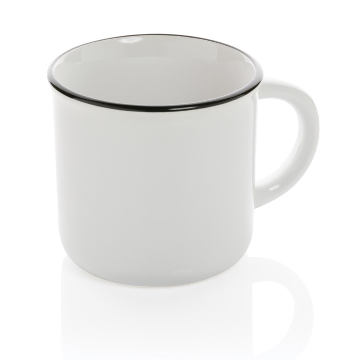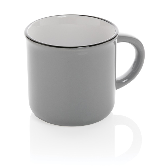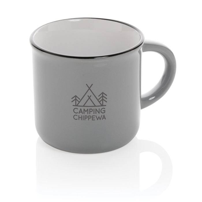 Taza de 280ml hecha de cerámica para mayor durabilidad. De aspecto vintage y con asa curvada para fácil agarre. Apto para lavavajillas de acuerdo con EN12875-1 (al menos 125 ciclos de lavado) para todos los métodos de marcaje. Presentado en caja de regalo.