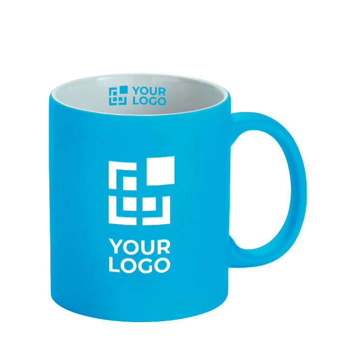 Llamativa taza personalizada de cerámica de tonos neón con la que sorprender a tus empleados. Además, se puede escribir con tiza en toda la superficie.