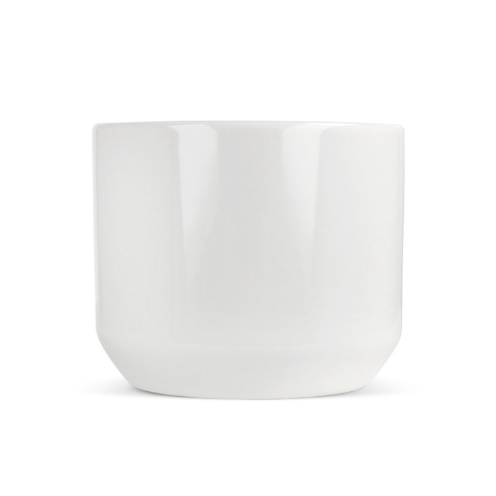 Taza blanca de porcelana con estilo minimalista y asa compacta. Ideal para disfrutar de tus bebidas favoritas con un toque elegante y moderno.