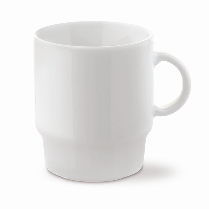 Tazas para merchandising de porcelana blanca apilable 250ml
