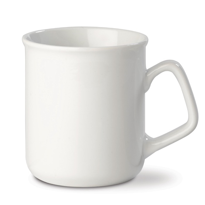 Taza blanca de porcelana, clásica y versátil, perfecta para cualquier entorno empresarial. Ideal para ofrecer una imagen profesional y pulida de tu negocio.