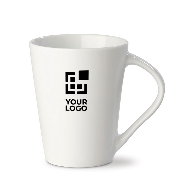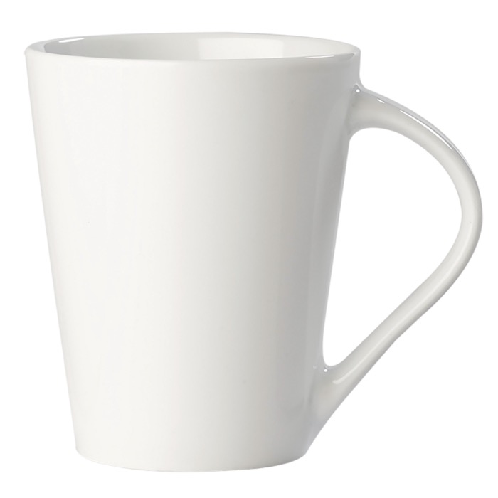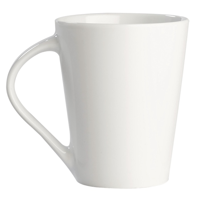 Taza cónica blanca de porcelana de excelente calidad, producida en Europa.