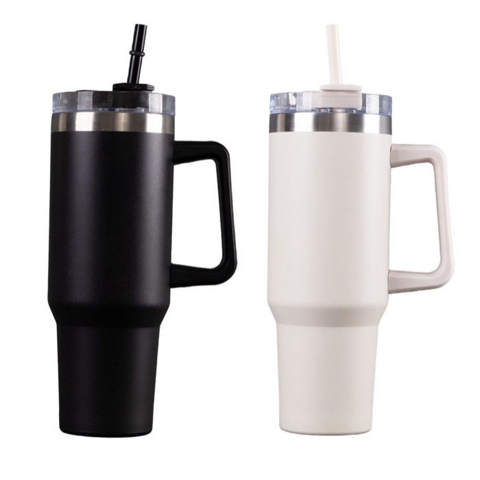 Botella termo de 1,18 L con sistema de doble pared que conserva la temperatura de las bebidas. Incluye pajita y asa para un uso más cómodo.