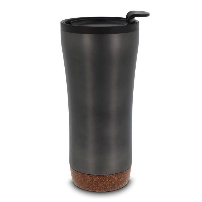 Vaso de acero inoxidable takeaway con tapa y base de corcho 300ml
