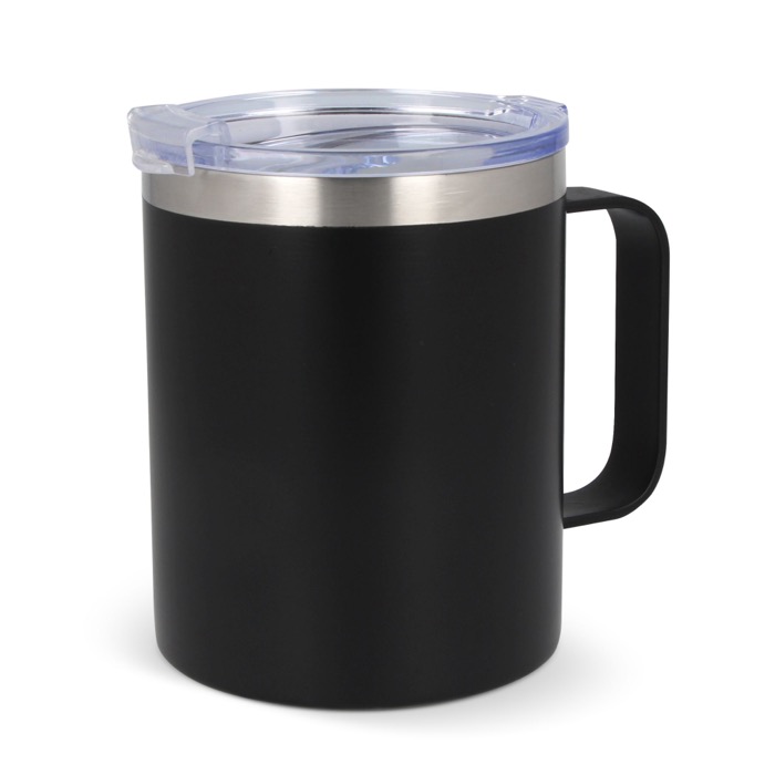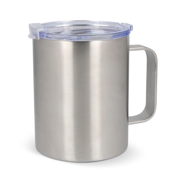 Vaso para ferias de acero inoxidable con tapa y asa de silicona 350ml