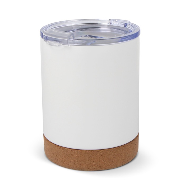 Vaso para llevar de acero inoxidable con tapa y base de corcho 350ml