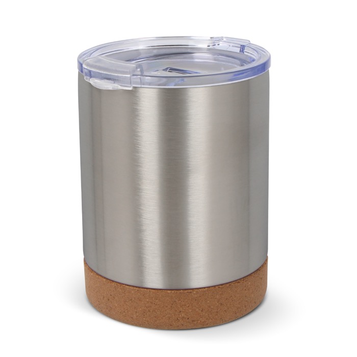 Vaso de acero inoxidable takeaway con tapa y base de corcho 300ml
