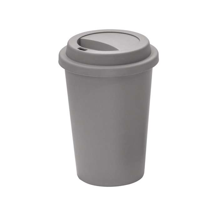Vaso de viaje de 450 ml, fabricado en PP con tapa también de PP. Diseño práctico y capacidad perfecta para llevar bebidas al instante.