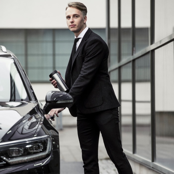 Vaso de acero inoxidable takeaway con tapa y base de corcho 300ml
