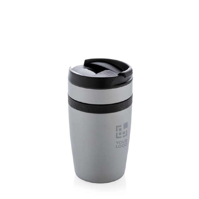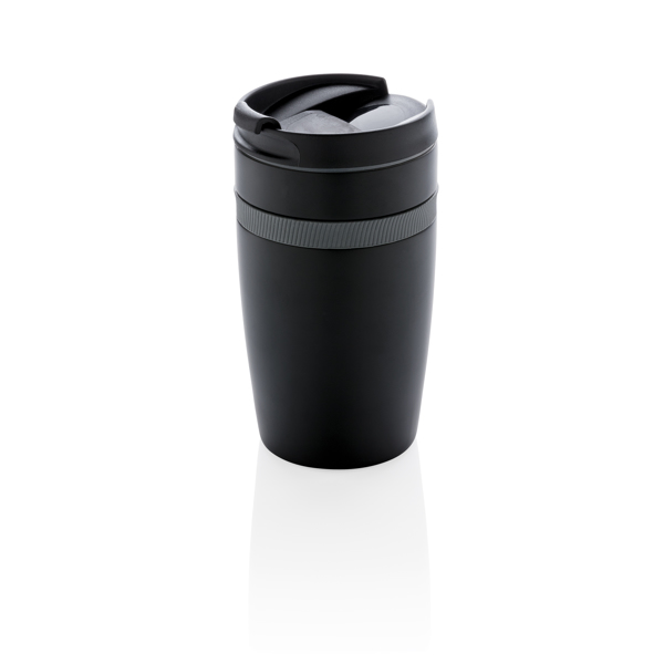 Taza de 280ml de doble pared con una banda de silicona exterior a modo de detalle. Mantén tus bebidas calientes hasta 5h y frías hasta 15h. El tamaño perfecto, ya que cabe en la mayoría de máquinas de café.