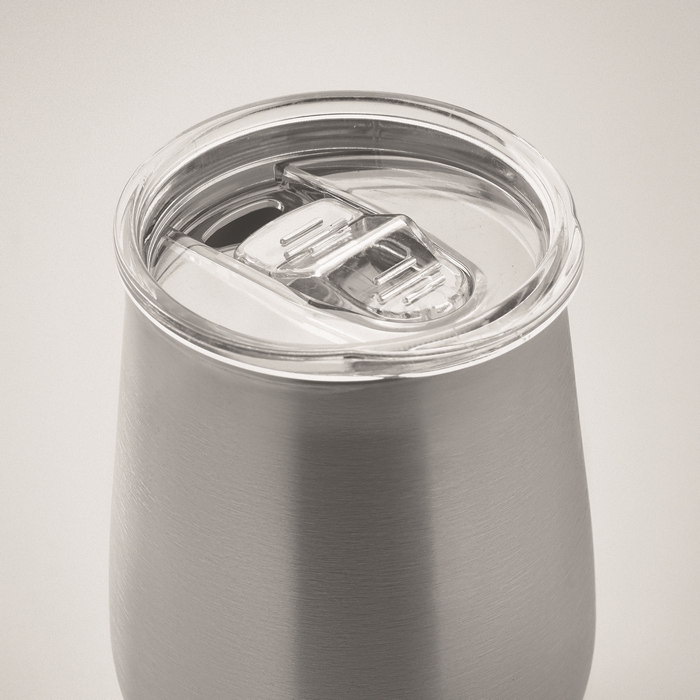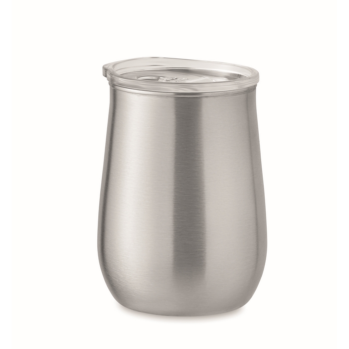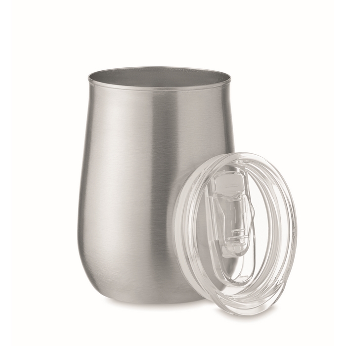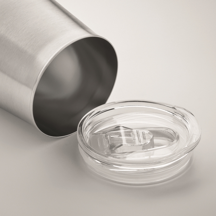 Práctico vaso de acero inoxidable con tapa incorporada para manterner la temperatura de su interior. Un modelo perfecto para ir de picnic o de excursión.