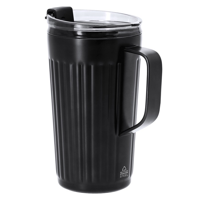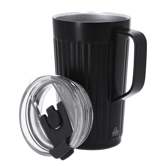 Esta taza térmica de doble pared para un aislamiento excelente cuenta con un bonito diseño metálico con acabado mate y un asa lateral ergonómica.