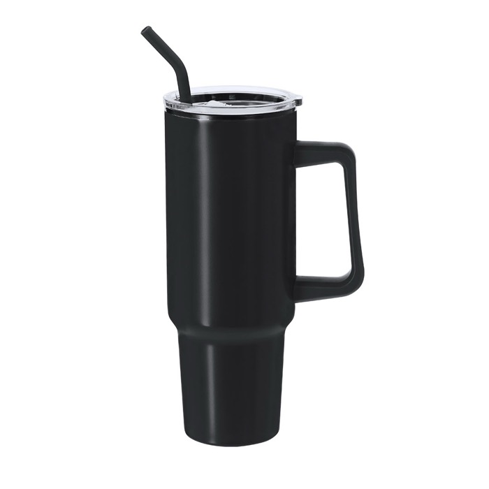 Vasos térmicos con asa grande y pajita negra 1,2L