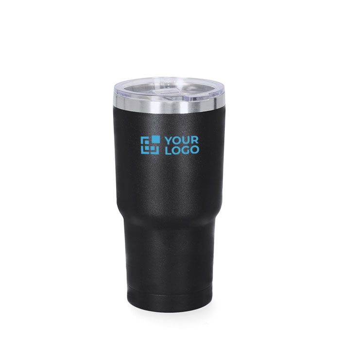Aprovecha el vaso térmico de acero inoxidable de doble pared, con dosificador de fácil apertura, para mantener tus bebidas a la temperatura ideal mientras trabajas con estilo.