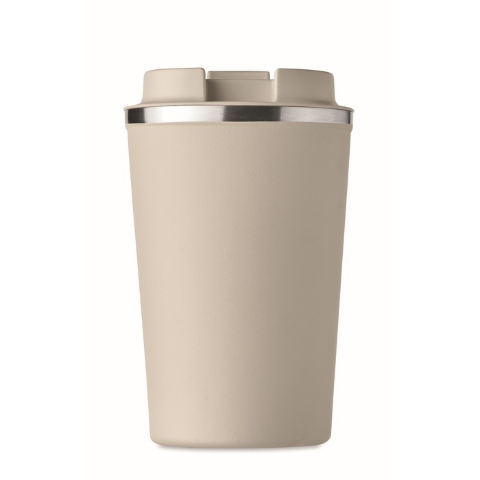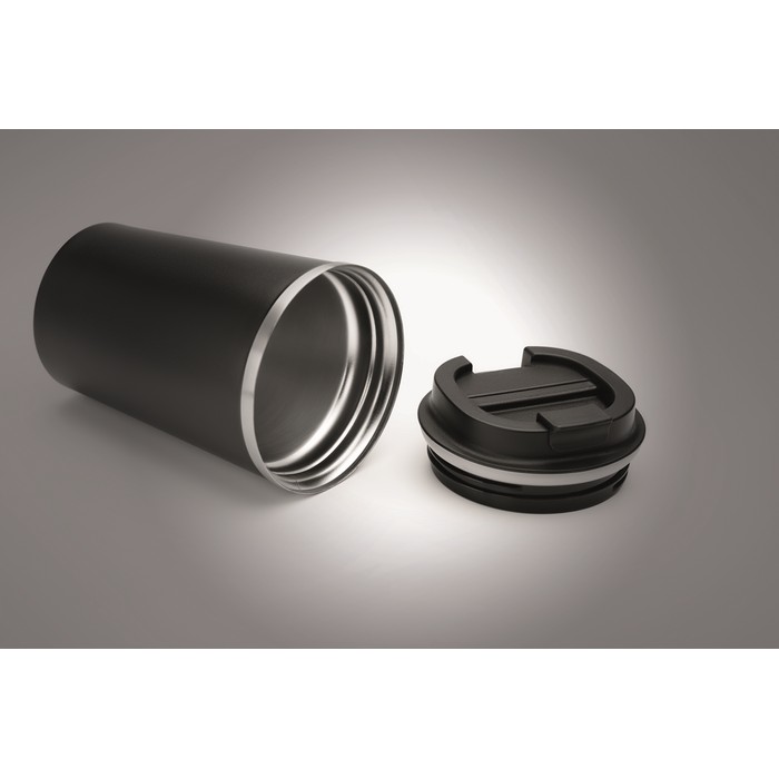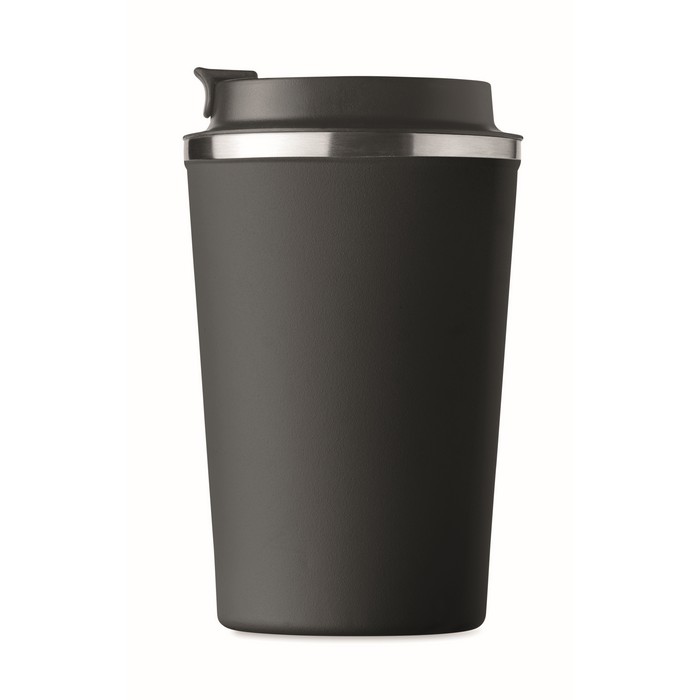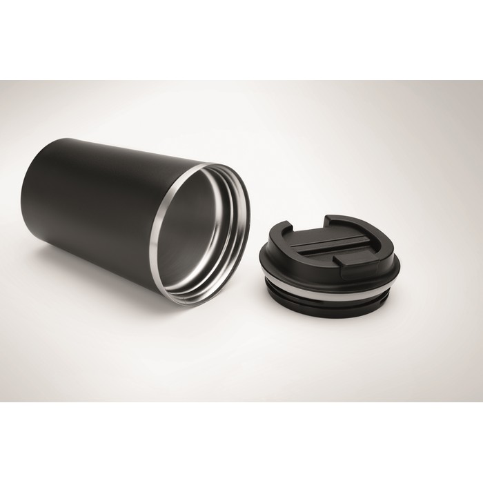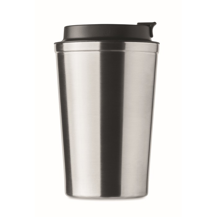 Vaso de acero inoxidable de doble pared con tapa de PP. Capacidad: 350 ml. Sin fugas.