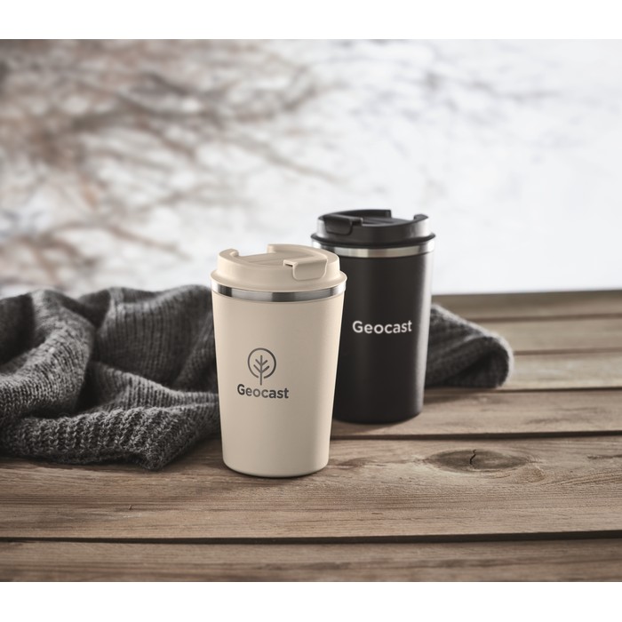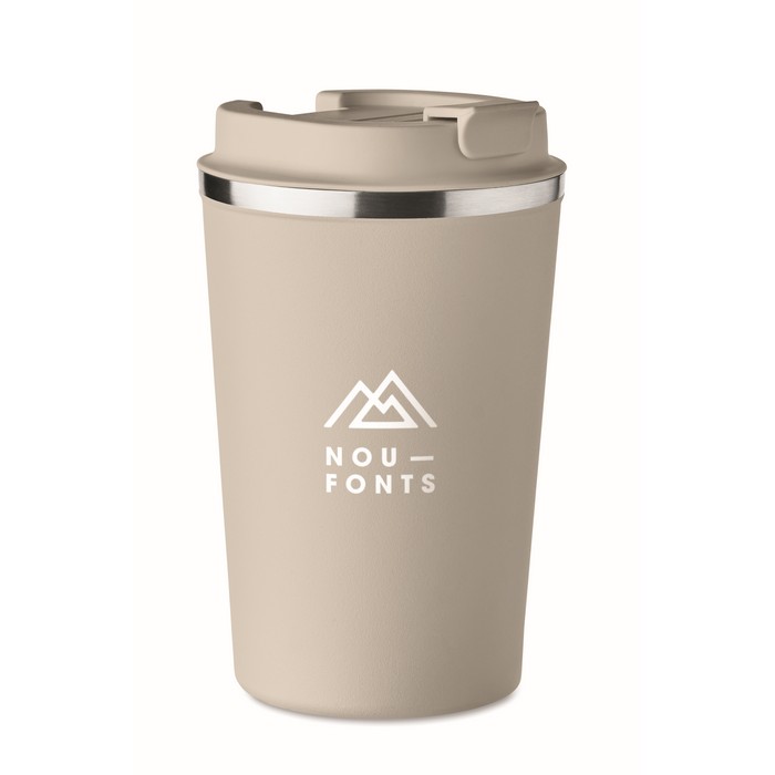 Descubre este vaso termo personalizable de acero inoxidable que, gracias a la doble pared, conserva tus bebidas calientes o frías durante todo el día.