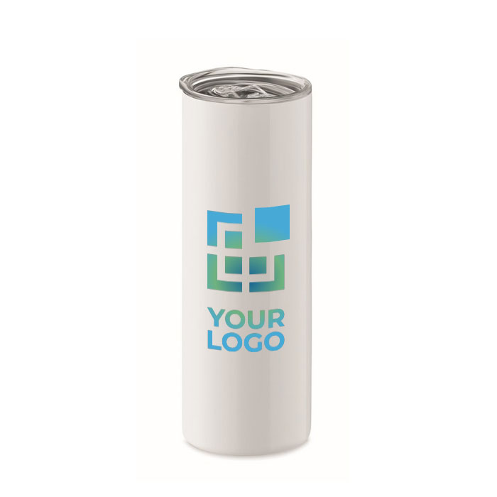 Termos corporativos blancos para que puedas diseñarlos a tu gusto. Con acero inoxidable mantienen la bebida en su temperatura durante un largo período de tiempo.