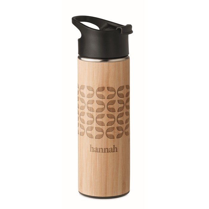 Con este termo personalizado transportar tu bebida favorita será muy cómodo. La botella es de acero inoxidable, antifugas y cuenta con un asa en su tapa.