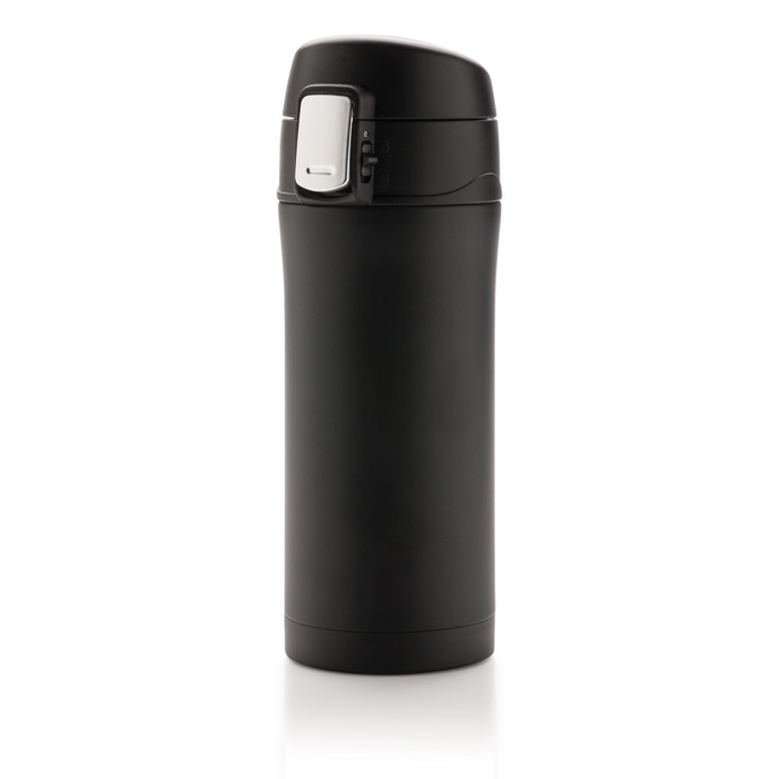 Gran taza de acero inoxidable con doble pared al vacío que mantiene su bebida caliente hasta 5 horas o fría hasta 15 horas. Tapa con cierre de seguridad, apta para lavavajillas. Ideal para llevar en el coche.