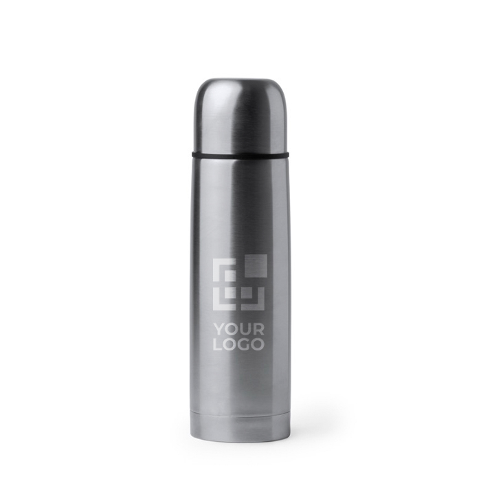 Termo de acero con acabado brillante y doble pared, con capacidad de 500 ml. Un regalo elegante y funcional que conserva las bebidas y realza tu logotipo.