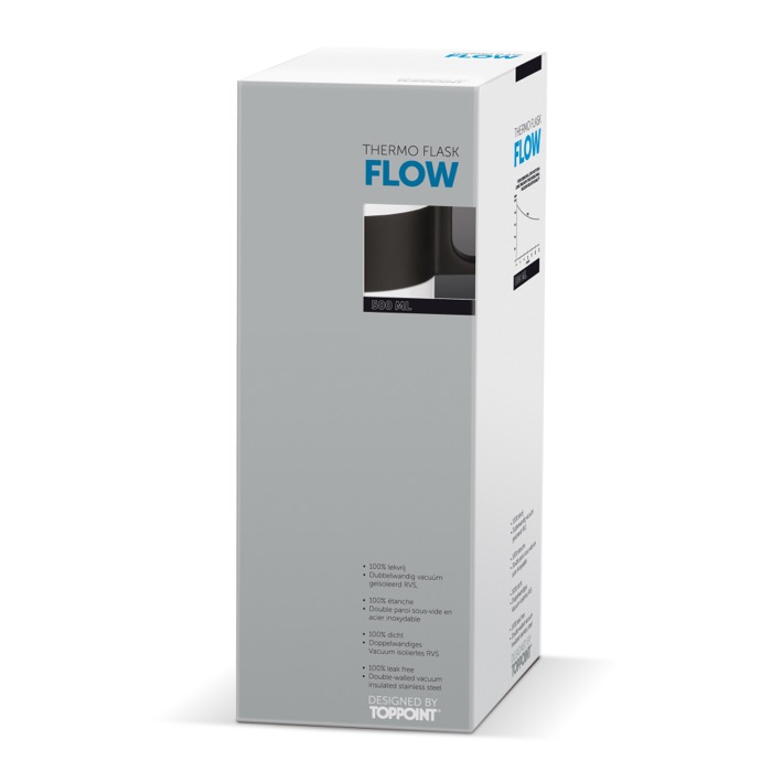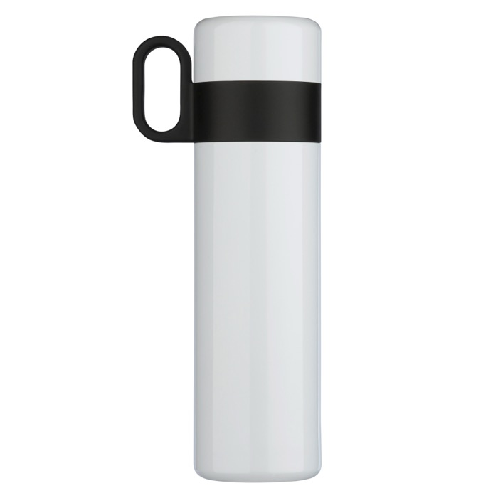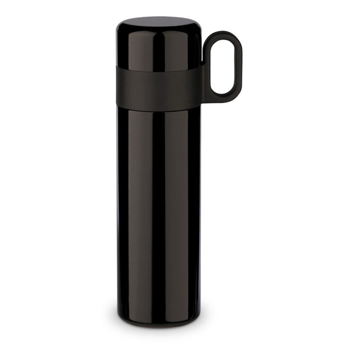 Botella de doble pared con aislamiento al vacío de la serie Flow. 100% estanca, fácil de transportar. El tapón funciona como taza, manteniendo las bebidas calientes hasta 12 horas y frías hasta 24 horas.
