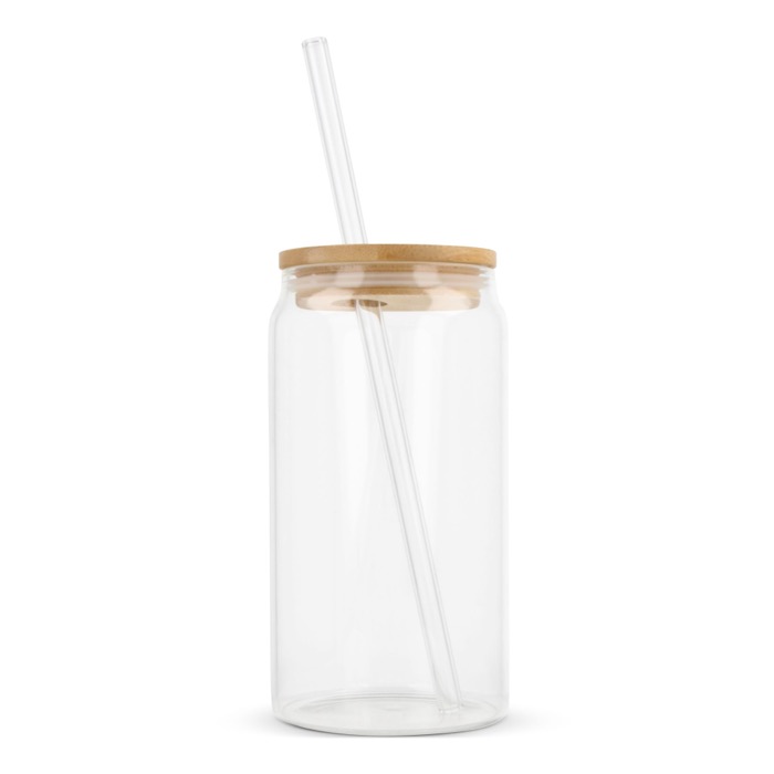 Vasos de cristal personalizados con pajita y tapa de rosca 450ml