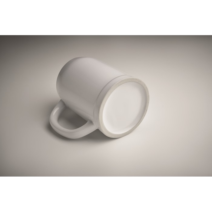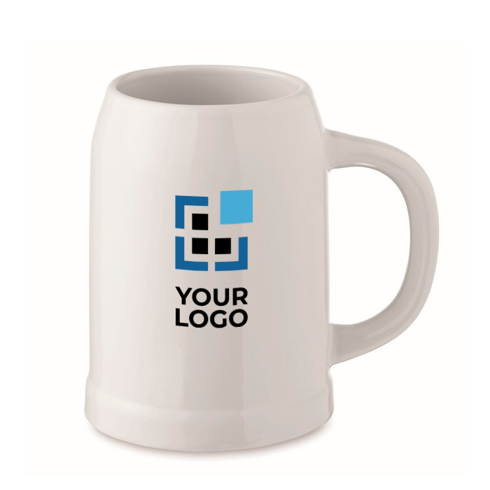 Jarra de cerveza de cerámica con revestimiento apto para sublimación. Un artículo personalizable que combina funcionalidad y estilo en cualquier celebración.