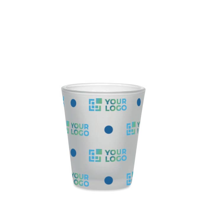 Personaliza tu vaso de chupito reutilizable con tu logotipo a todo color mediante sublimación y sorprende en eventos o fiestas con un toque promocional único.