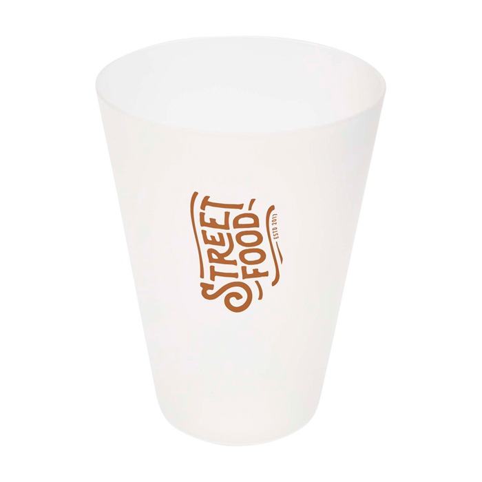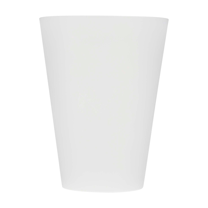 Vaso reutilizable de plástico translúcido con acabado mate, para todo tipo de eventos. Libre de BPA, resulta práctico tanto en festivales como en el día a día.